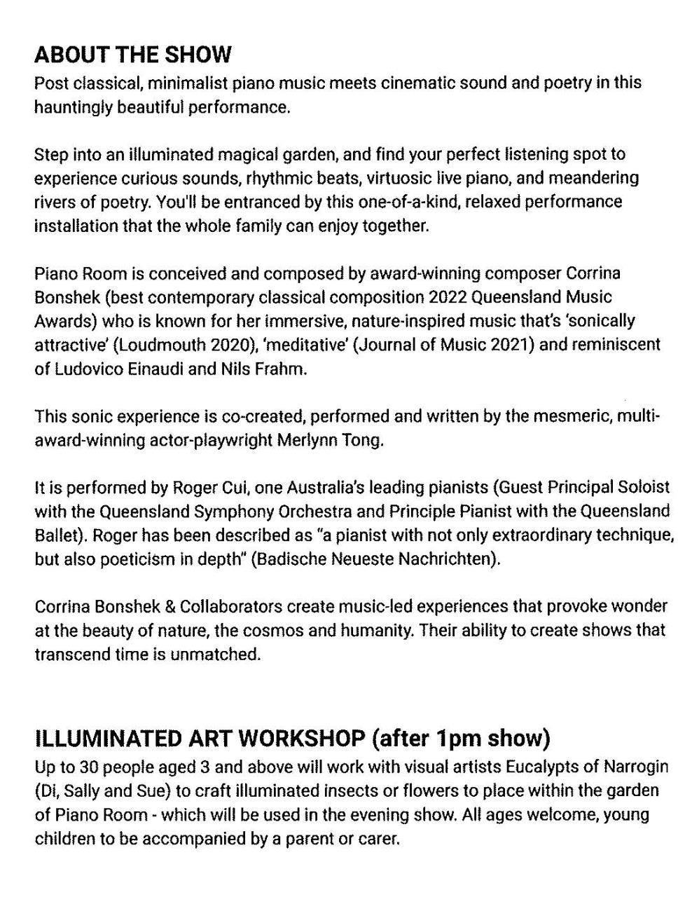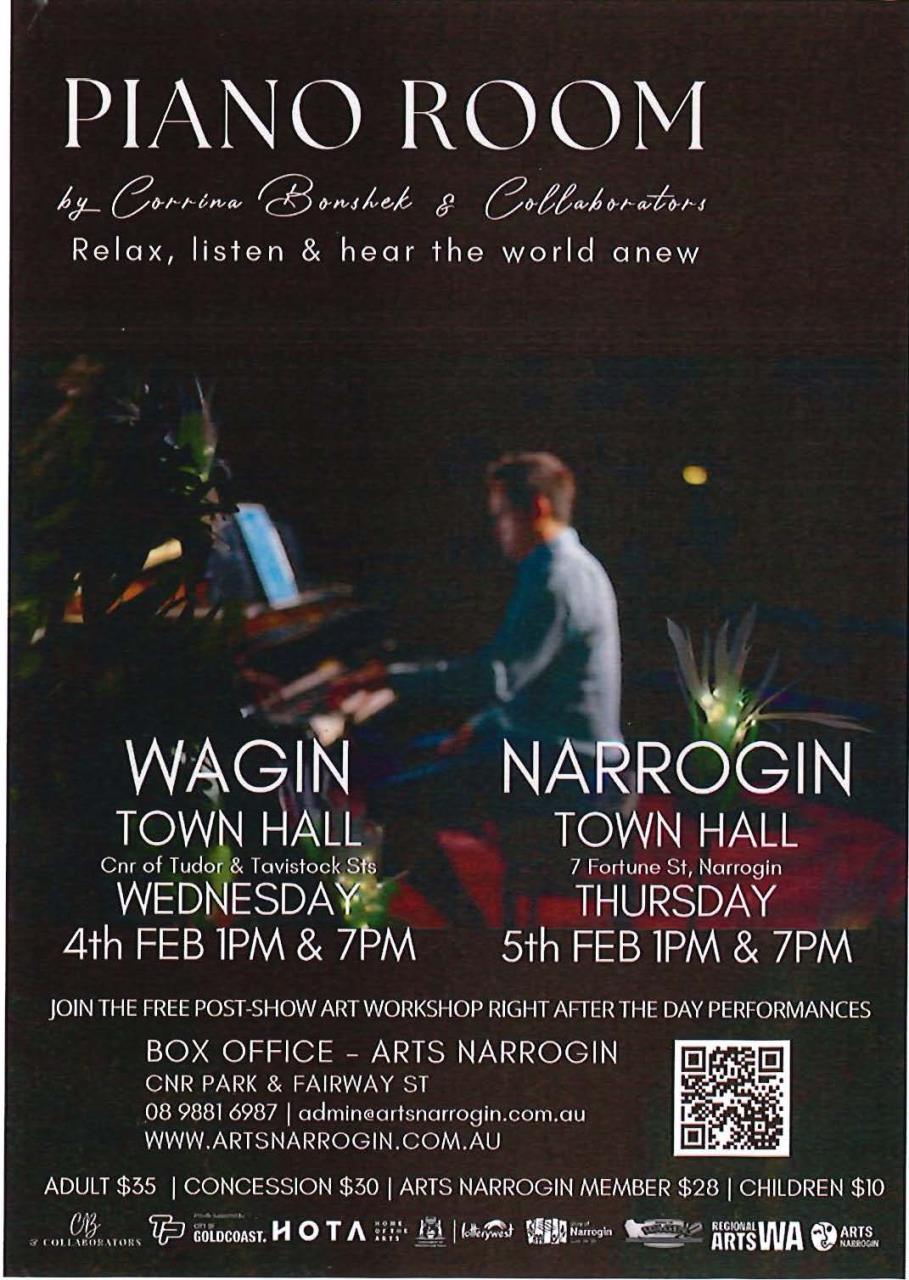 Piano Room - Wagin Town Hall - Wednesday 4 February (1pm and 7pm)